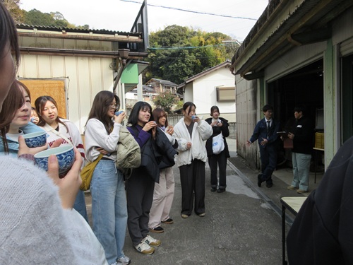 2月5日(木)、学生19名が佐賀県基山町の鶴製茶を訪れ、茶畑と製茶工場の見学を行いました。