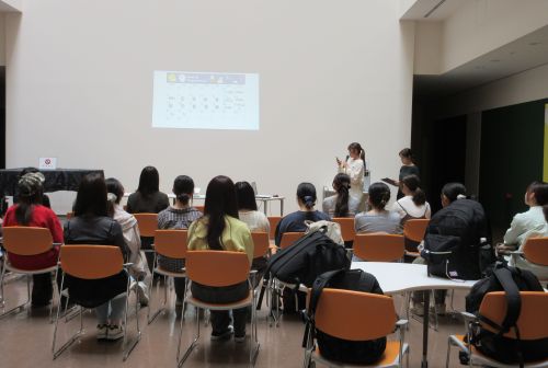 昼休みに多目的スペースで実施したこともあり、 多くの学生や教職員が参加し、熱心に耳を傾けていました。 本学が推進する国際教育の取り組みを身近に感じられる場となり、 今後の海外プログラムへの参加意欲を高める契機ともなりました。