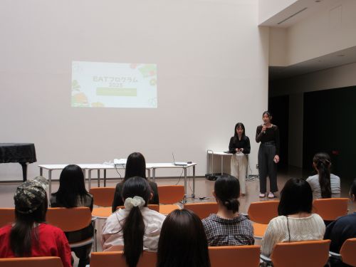 本学におけるグローバルな体験的学習プログラムである EATプログラム(日・韓・ 泰の大学連携による食のスペシャリスト養成プログラム)と、Da visプログラム(「グローバル社会における私たちの食と環境」 をテーマとした米国Davis研修) の合同成果報告会を開催しました。報告会では、 参加学生が制作した動画の上映に加え、 現地での学びや体験を自らの言葉で紹介しました。 異なる文化や教育環境の中で得られた気づきや成長を共有すること で、 国際的な体験学習の意義を学内に広く伝える機会となりました。