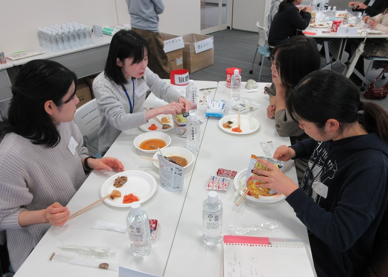 参加者は、アルファ化米や長期保存食の試食体験、および関連する展示物の見学を通して、災害時の栄養確保や備蓄のポイントについて