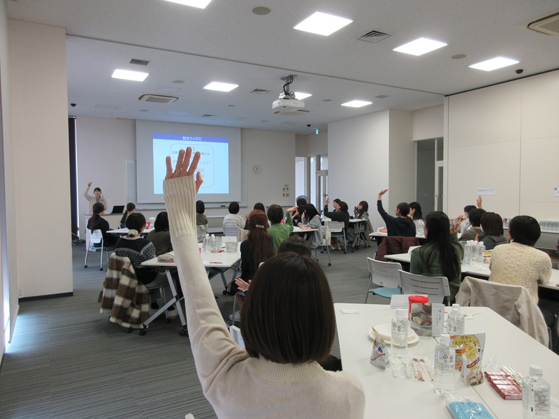 被災地での栄養状態に関する調査研究の経験に基づき、災害発生時に必要となる「食の備え」の重要性について講演しました。