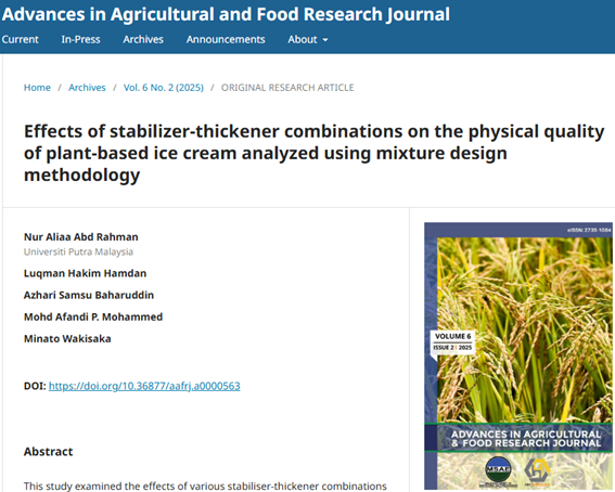 国際共著論文がAdvances in Agricultural and Food Research Journalに掲載されました