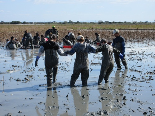 レンコン掘りの様子