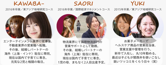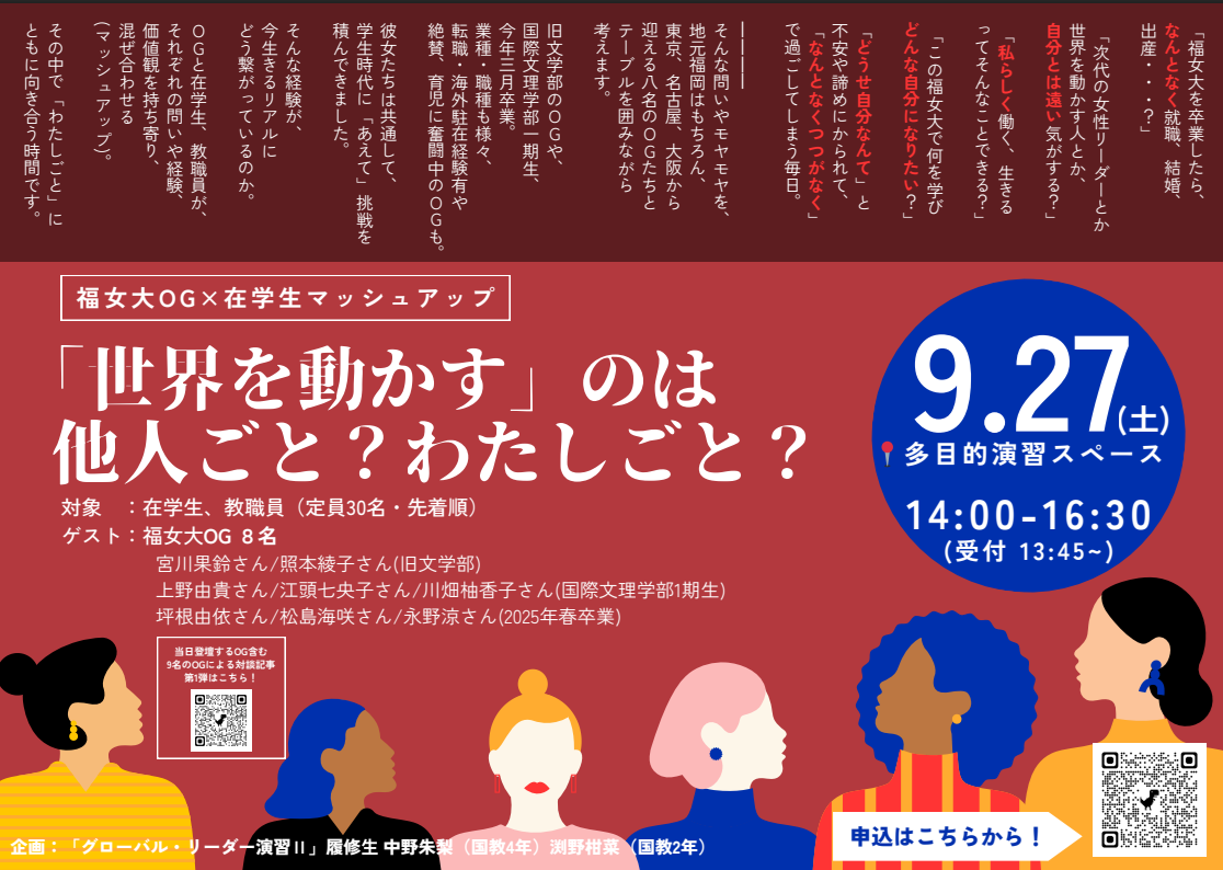 今回の公開は、記事執筆をしてくれた8名のOGのうち4名も登壇する、2025年度グローバルリーダー(GL)演習Ⅱ履修生による企画に合わせたものです。