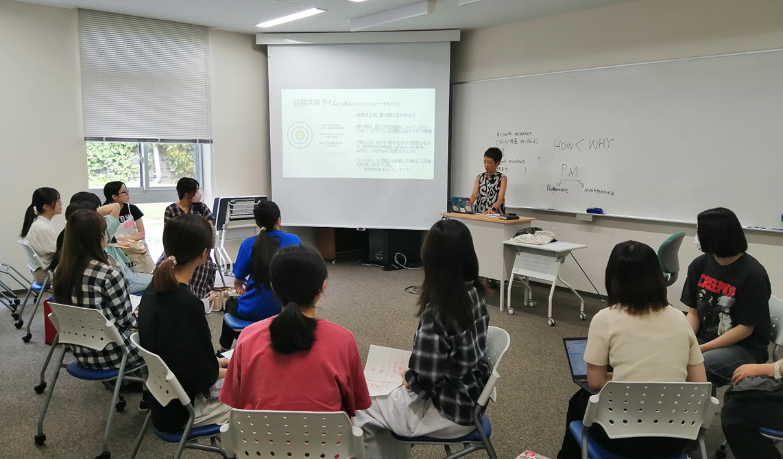 5月末のキックオフセッションに続き、7月初旬には「コミュニティ・オーガナイジング・ジャパン(COJ)」の中村果南子さんを迎え、「ひとりが抱え込まないチームの作り方:『みんなで』『本気で』『楽しく』を手放さないためのポイント」講義&ワークショップで学びました。