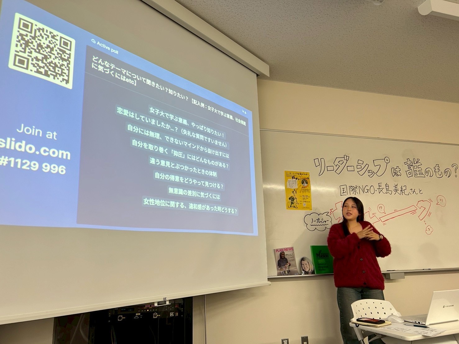 私たちは前半戦で「何となくつつがなく」に抗ったはずなのに、どこかもやもやが残っているのに気づきました。後半戦で私たちが向き合ったのは、そんなもやもやの正体です。そのきっかけは、国際NGOプラン・インターナショナルの職員として国内外で活動されてきた長島美紀さんを迎える企画づくり。女性リーダーシップセンター主催の教職員向け研修の講師として長島さんがご来校なさると聞き、有志学生でイベントを企画することにしたのです。
