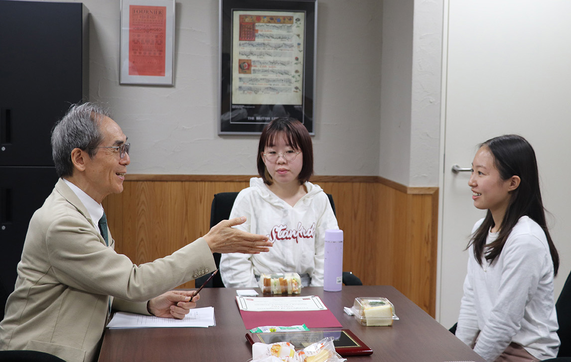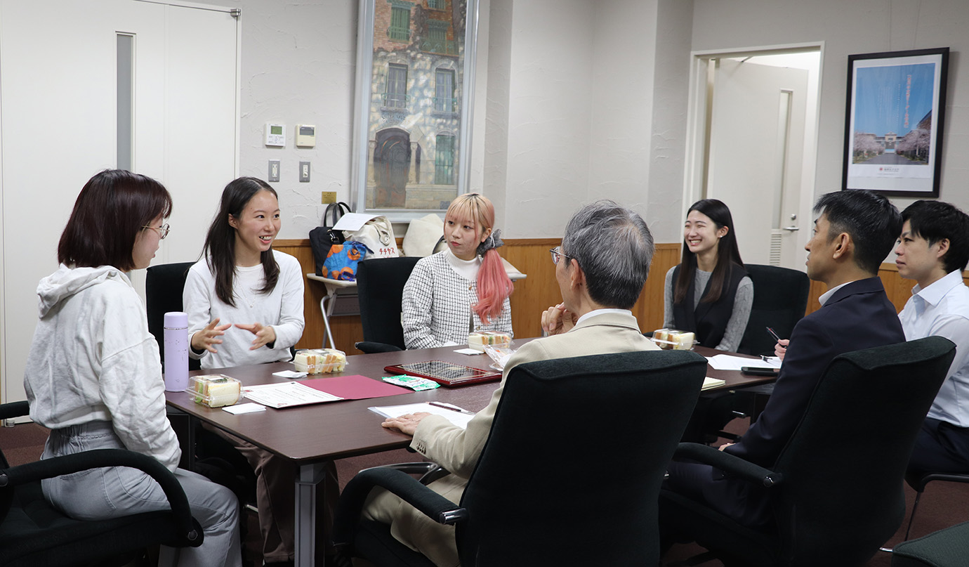 そのうち4名が11月4日、学長室を訪問し、向井学長・藤野副学長に受講及び受賞を報告。オンラインでの協働学習や異文化交流を通して得た経験や気づきを語り合いました。