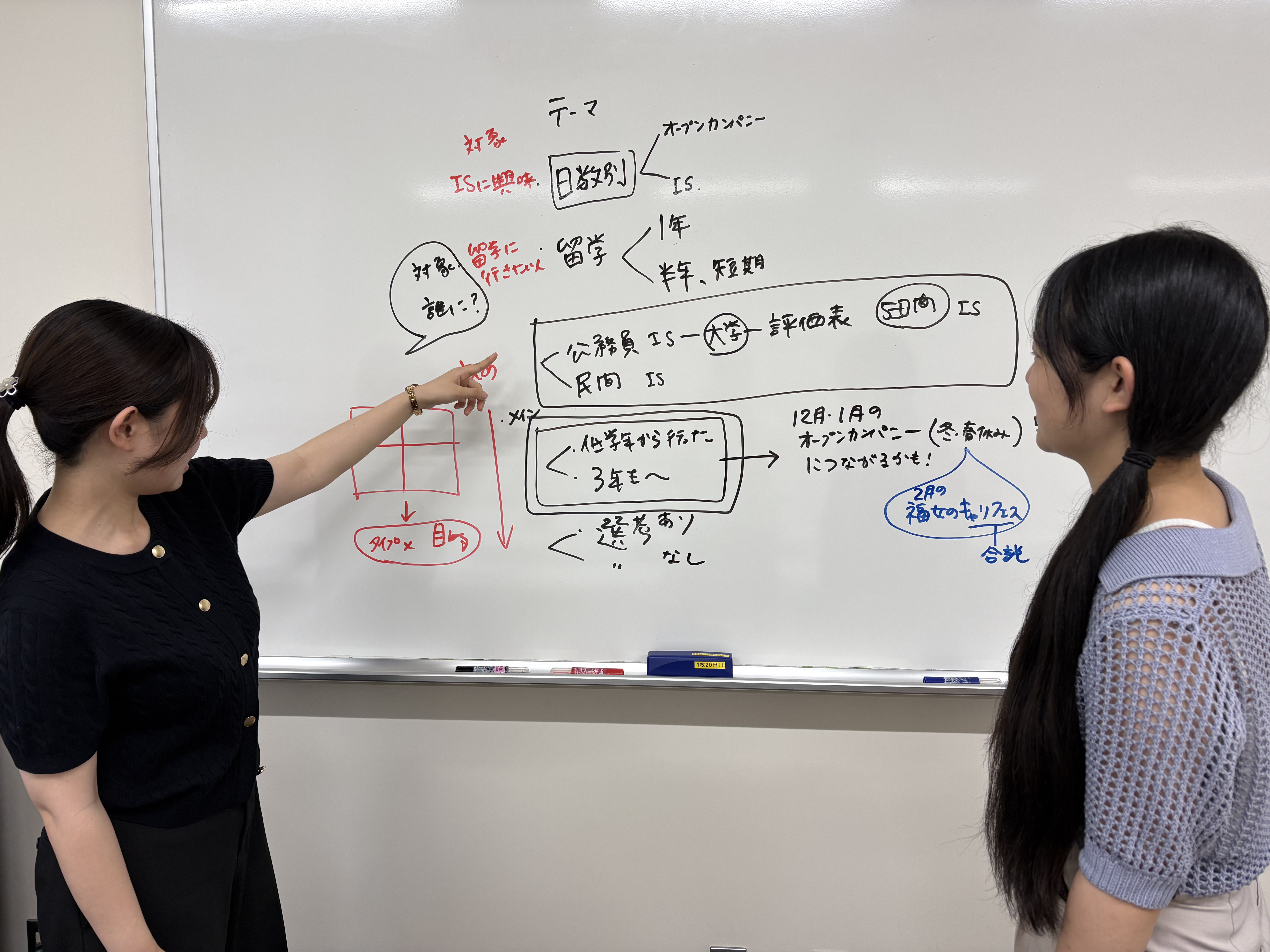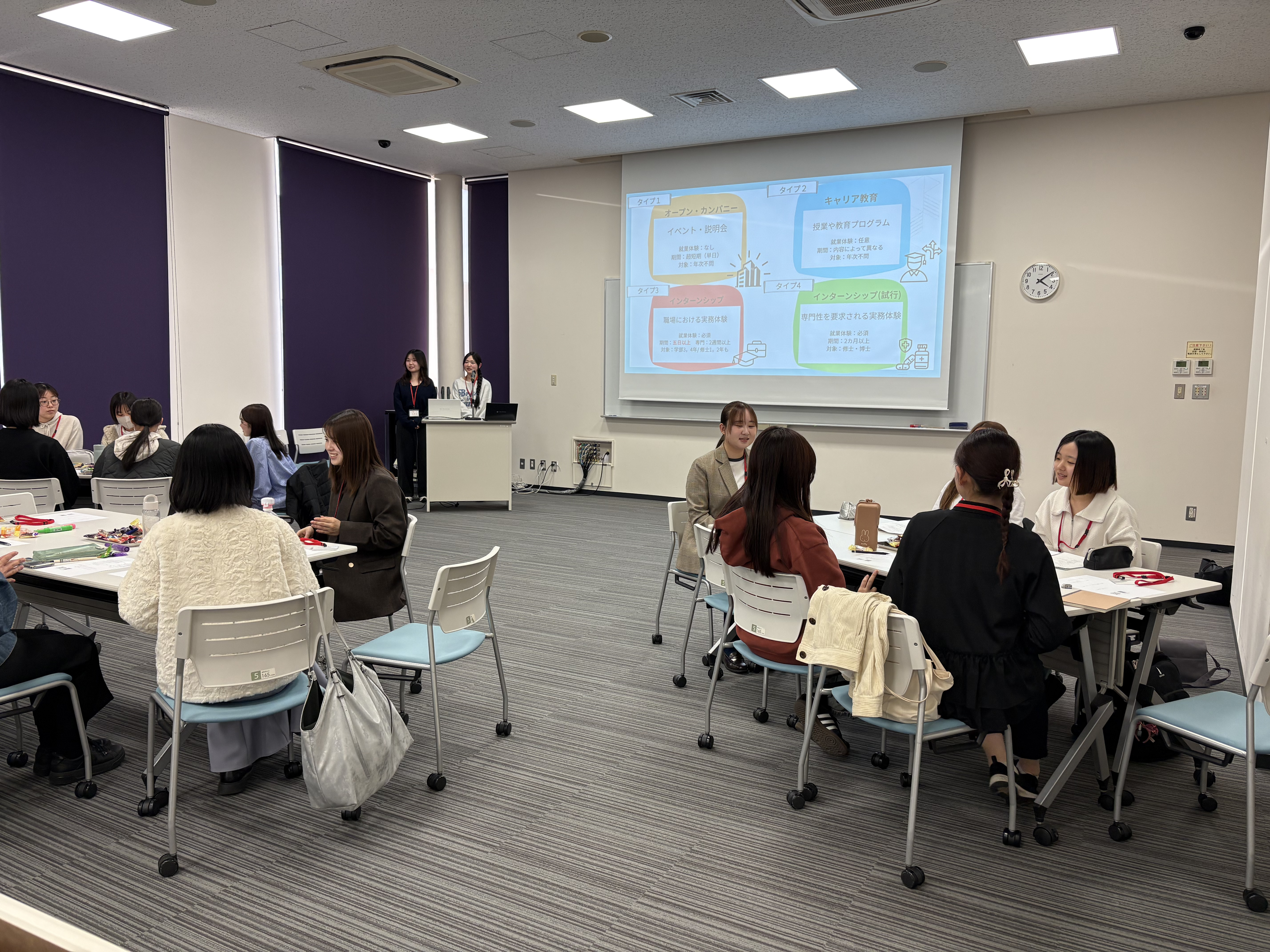 1つ目は、定例会議です。教職員の方々が集まるキャリア支援部会の定例会議に加わり、学生代表として報告を行いました。単に場に出るだけでなく、資料作成などの事前準備を徹底することで、会議の円滑な進行に貢献できるように努めました。